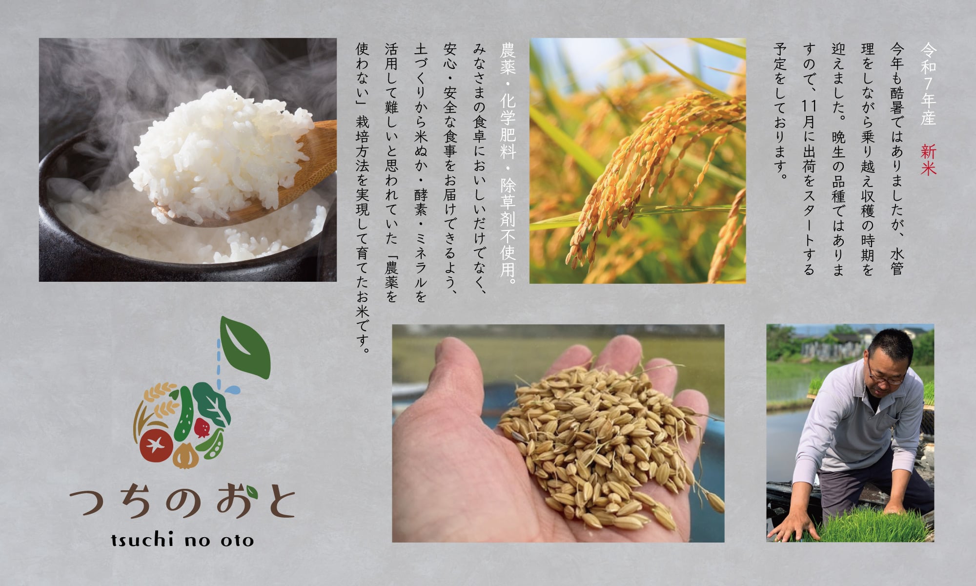 『つちのおと』は農薬・化学肥料・除草剤を一切使わない”たべもの”ブランドです。