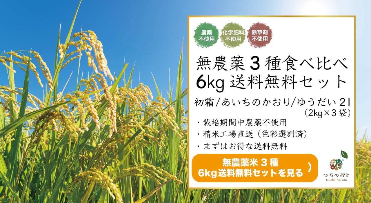 無農薬栽培米6kg(2kg×3袋)『つちのおと』3種食べ比べセット 初霜・あいちのかおり・ゆうだい21【精米済】 (酵素ミネラル農法)岐阜県産 令和7年産