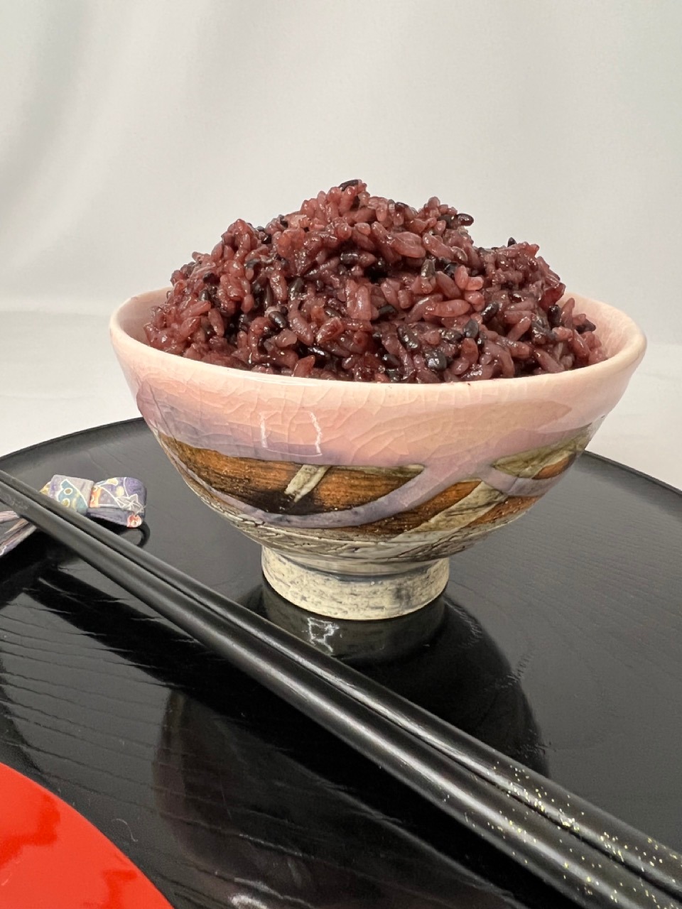 黒米をプラスすることで鮮やかな紫色になり、冷めてももっちりとした食感!