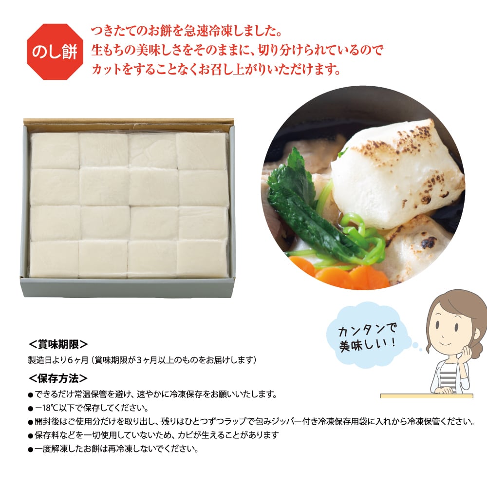 1贅沢なお餅をたっぷりご堪能いただけます。生もちならではの柔らかさと、つきたてならではの風味をぜひお楽しみください。特別な日のおやつや、家族団らんのお供に最適です!また、簡単にアレンジもできるので、さまざまな食べ方で楽しむことができます。