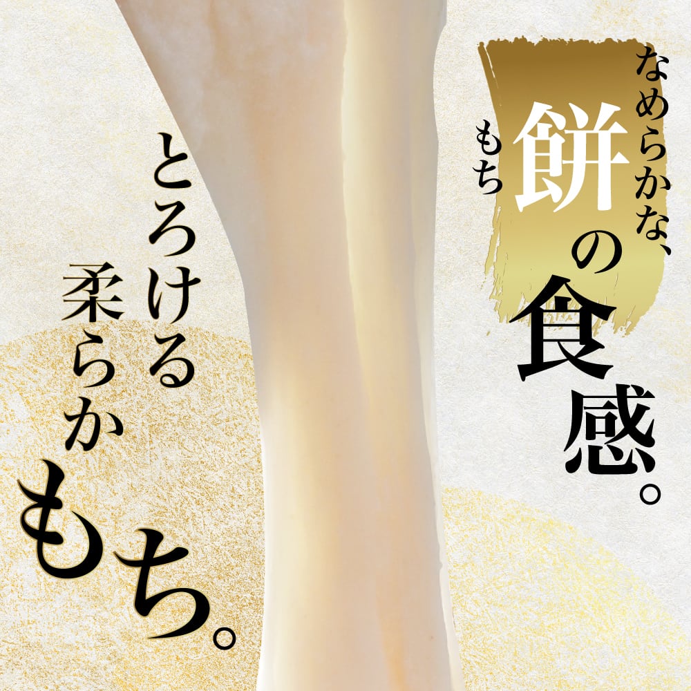 たかやまもちは、岐阜県高山市で丹精込めて育てられたもち米。米の品質が高く、モチモチとした食感と自然な甘みが特徴です。このもち米の特性を最大限に活かし、職人の手で心を込めてつきあげました。新鮮なつきたての味を急速冷凍することで、家庭でも簡単に楽しめます。