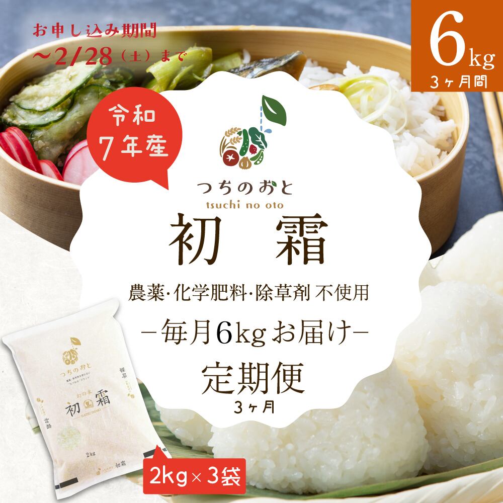 定期便【精米済】無農薬栽培米『つちのおと初霜』6kg(2kg×3袋)(酵素ミネラル農法)岐阜県産 【令和7年産】