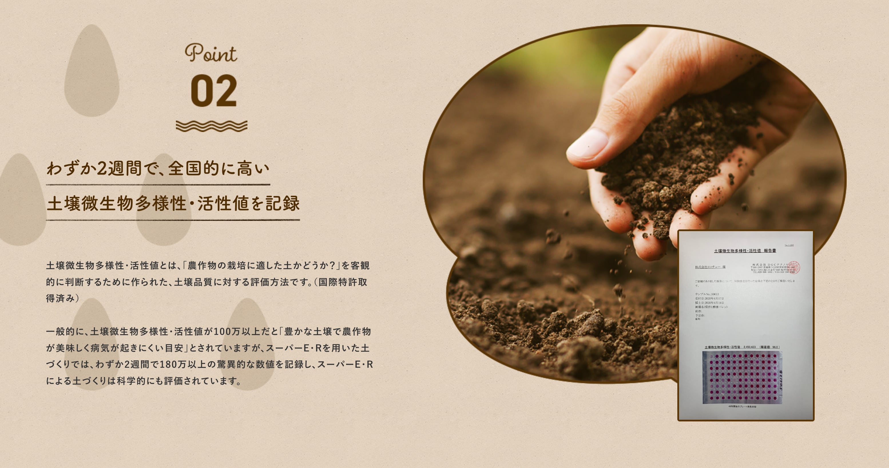 しかしスーパーE・Rは、土壌微生物多様性・活性値による数値化実験により